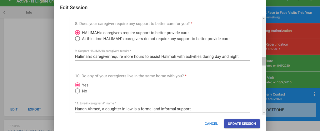 - Select if you spoke with the informal support to confirm their ability to assist at the visit or telephonically outside of the visit