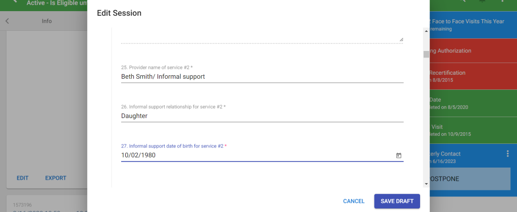 - In “Type of Service” Informal Support must be selected if the participant receives any care from informals, no matter how minimal