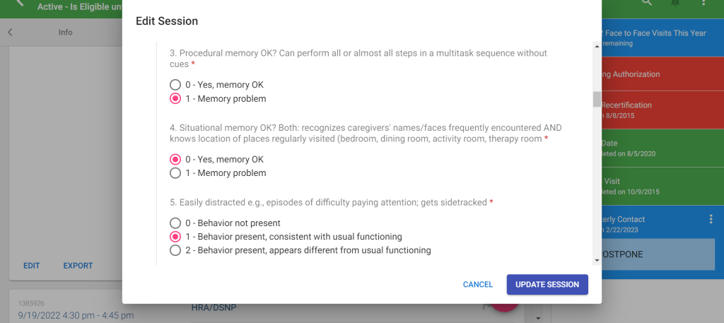 - You will need to gather information from the participant/POA during the visit to document a plan.